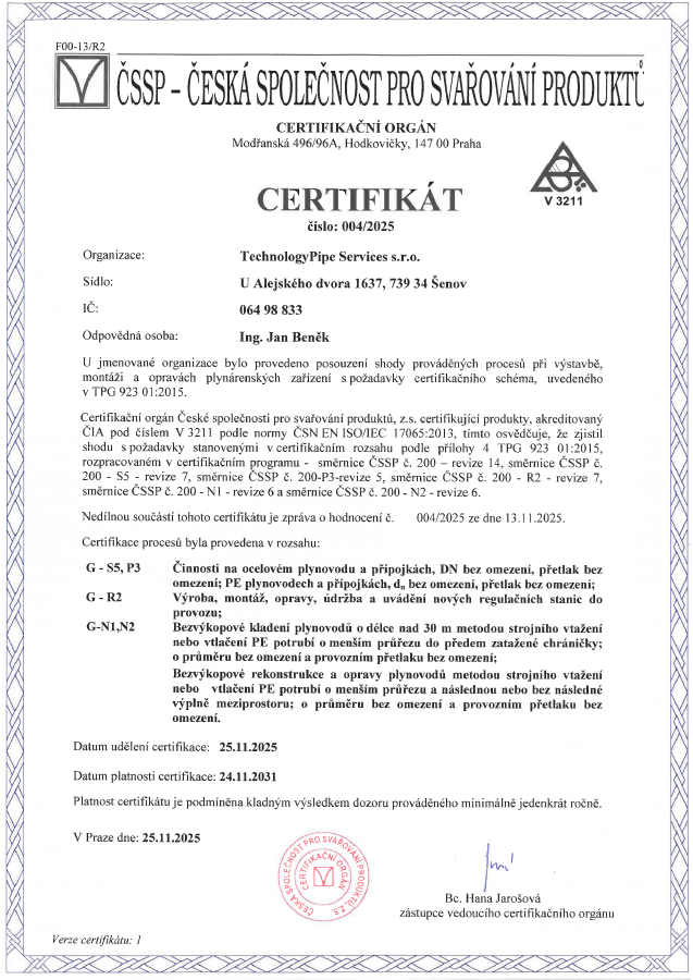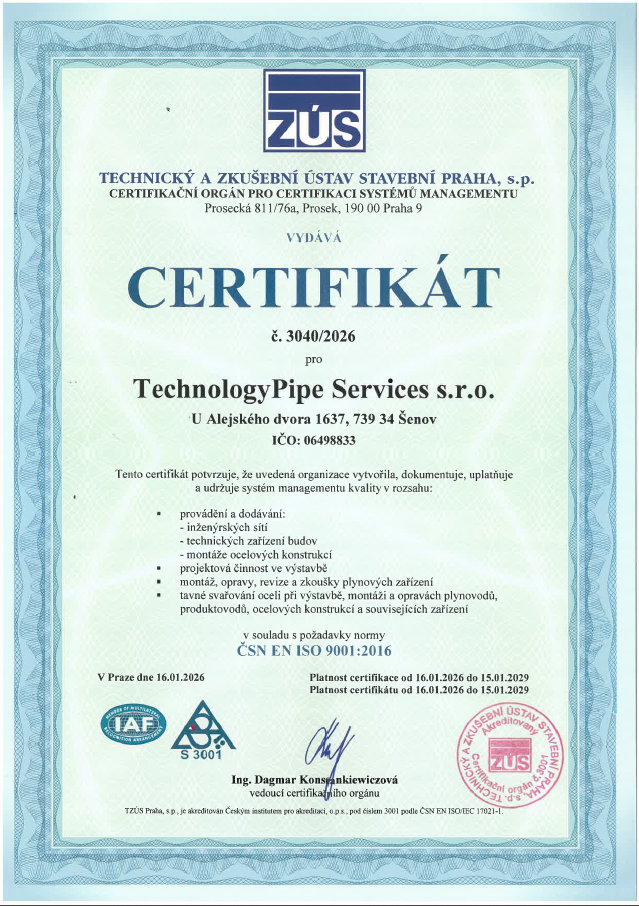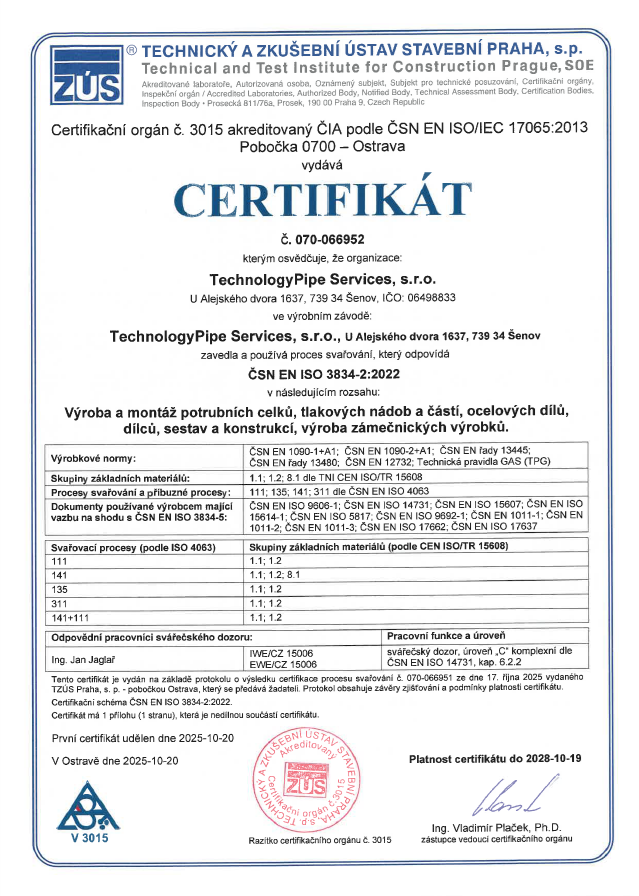 Naše společnost v roce 2020/2021 využila možnosti spolufinancování s Evropskou unií na projektu „Pořízení technologií pro firmu TechnologyPipe Services s.r.o.“